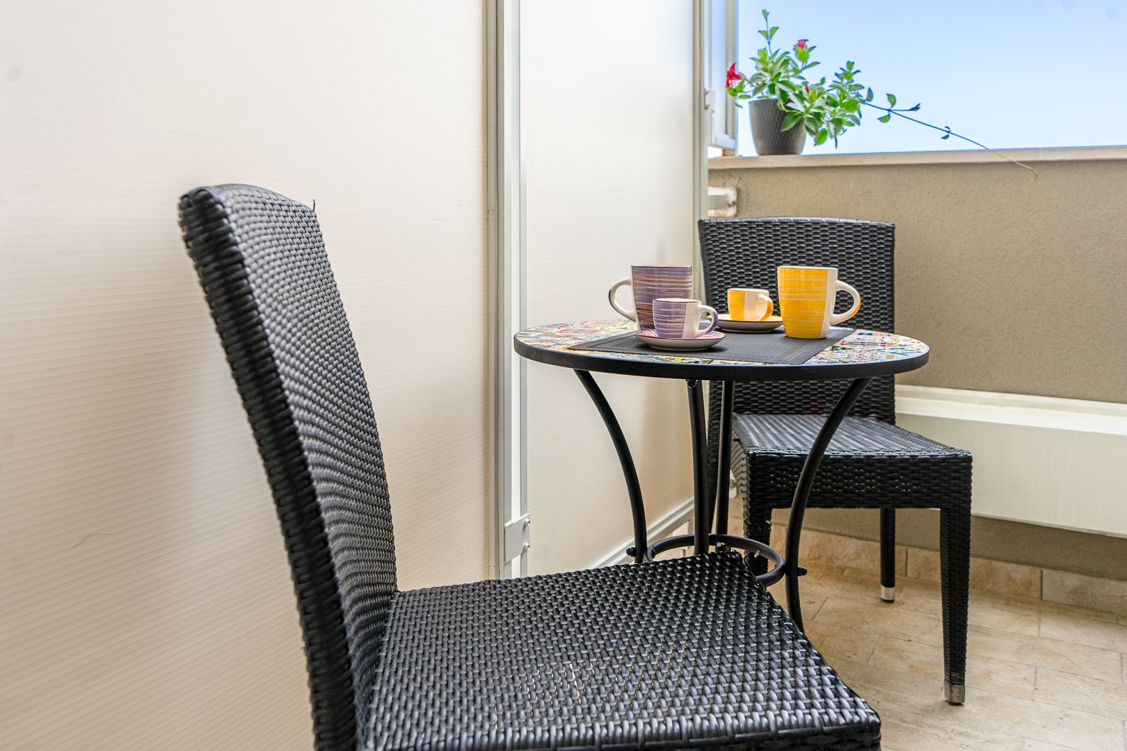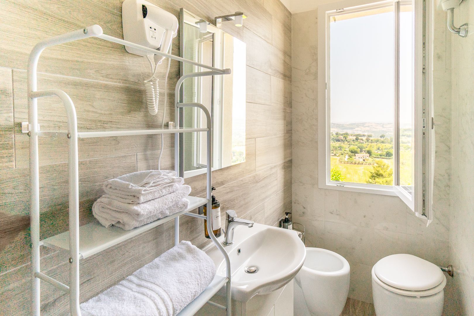 Situato al piano terra, gode di un affaccio diretto sulla vallata del Chienti e sulle colline maceratesi, fino ai maestosi Monti Sibillini.